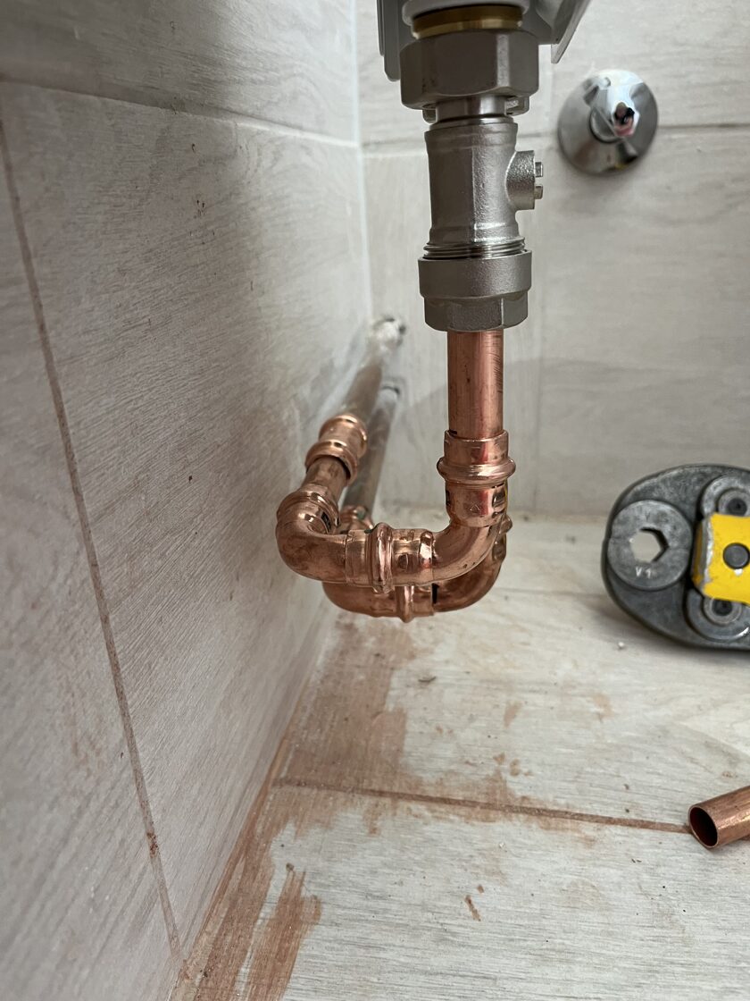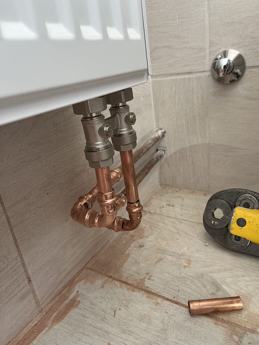 Dopojení radiátoru k rozvodu topení, všechny spojení jsou zalisované -