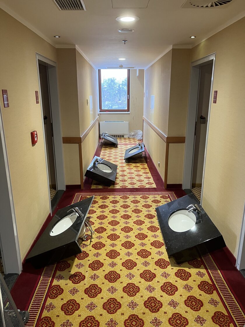 Provedení kompletní demontáže 42 pokojovích koupelen v hotelu Marriott Plzeň -